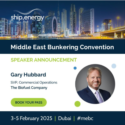Gary Hubbard FCILT, SVP, Commercial & Operations at The Biofuel Company, will be speaking at the Middle East Bunkering Convention taking place in Dubai 3-5 February 2025.