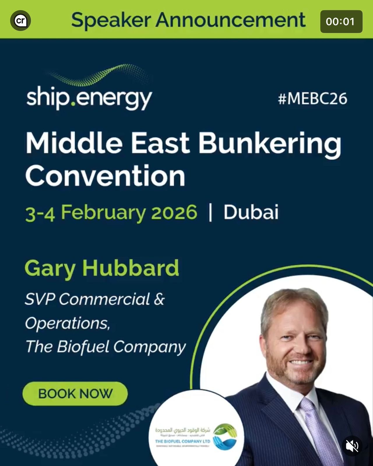 Gary Hubbard FCILT, SVP Commercial & Operations at The Biofuel Company will be speaking at the Middle East Bunkering Convention taking place in Dubai, 3 – 4 February 2026.